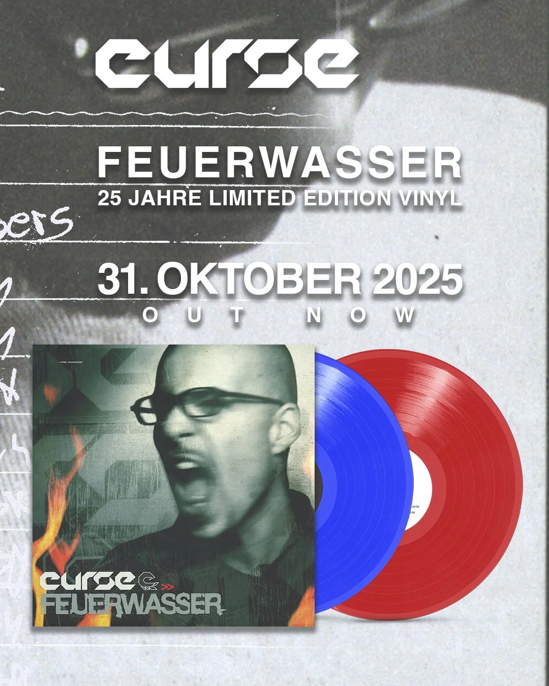 Mit Feuerwasser setzte Curse im Jahr 2000 einen Meilenstein im deutschen Hip-Hop. Tiefgründige Lyrics, packende Storys und ein Sound, der zwischen rauer Straßenpoesie und reflektierter Introspektion balanciert. Nach seiner Rückkehr aus den Staaten mit knapp 20 Jahren, bringt Curse Ende der Neunziger neue HipHop-Einflüsse aus New York nach Deutschland und stellt seine „Zehn Rap Gesetze“ auf. Die ernsten und persönlichen Texte, unterlegt mit professionell produzierten Beats, werden zu Curse’s persönlicher Signatur in der Deutschen Rap Szene und Feuerwasser zu einem Album, welches kommende Generationen prägte. Original-produziert von Tony Dawsey (Jay-Z, Akon, Kid Rock, Nine Inch Nails), gilt dieses Album bis heute als eines der bedeutendsten Rap-Debüts Deutschlands.